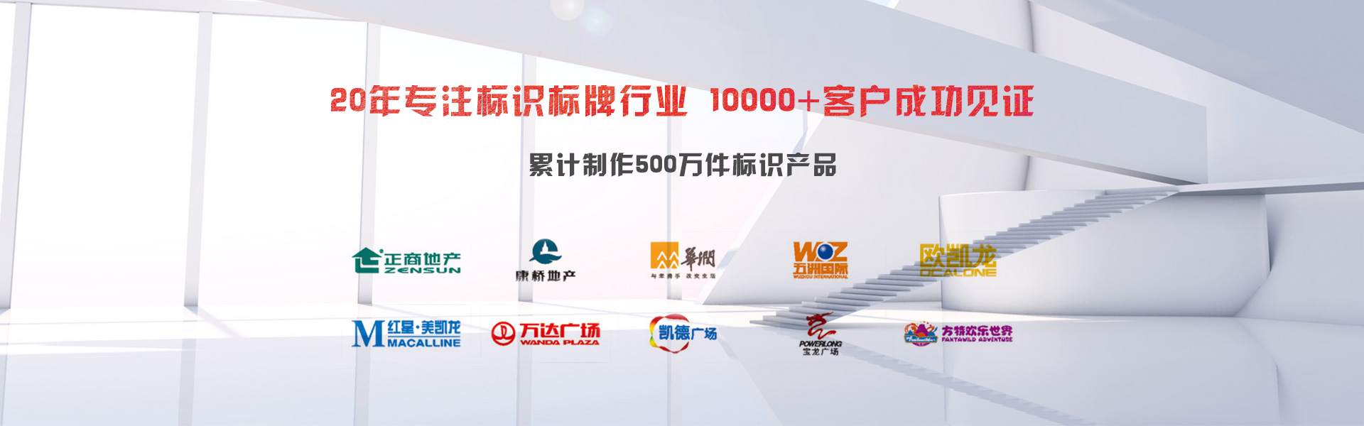 20年專注標(biāo)識(shí)標(biāo)牌行業(yè),10000+客戶成功見證,累計(jì)制作超500萬件標(biāo)識(shí)標(biāo)牌產(chǎn)品;